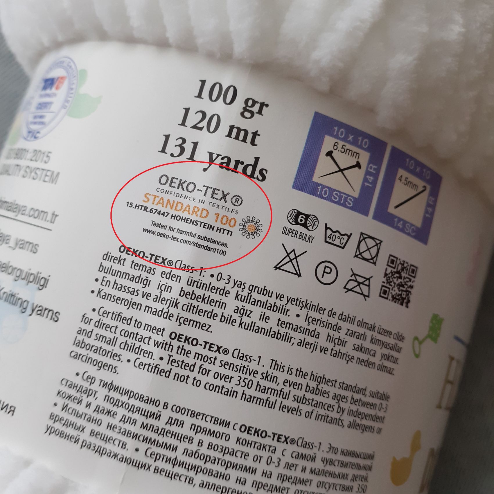 Ze zahraničních přízí má tento atest např. většina přízí značky Drops, nebo třeba oblíbená Himalaya Dolphin baby. Tyto informace najdete většinou přímo na pásce (viz obrázek).